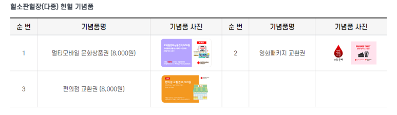 다만, 감사의 의미로 헌혈자에게 헌혈 기념품을 지급하고 있는데요.