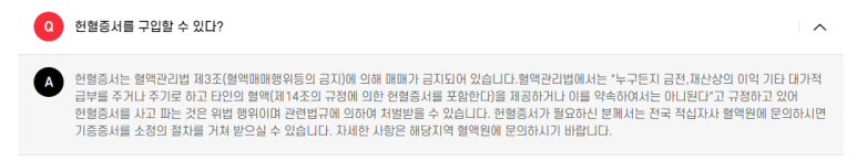 :헌혈증서는 혈액관리법에 의해 매매가 불가능