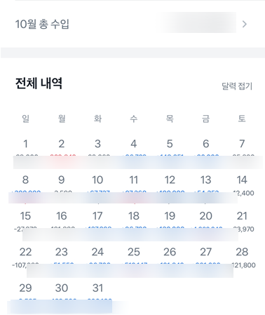 10월 달은 운이 좋아서 아래 파란색 수입 내역처럼