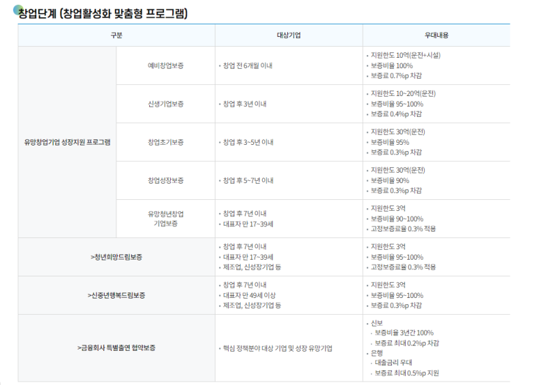예비창업보증, 신생기업보증, 창업성장보증,