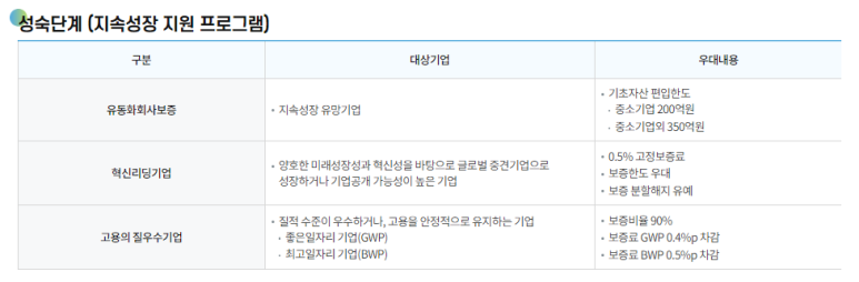 자료 : 신용보증기금 홈페이지(성숙단계)