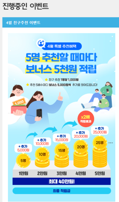 매달 가입이벤트도 하고 있으며 친구 추천이벤트도 하고 있네요.