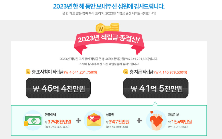 자료 : 엠브레인 패널파워(2023년 적립금 총 결산)