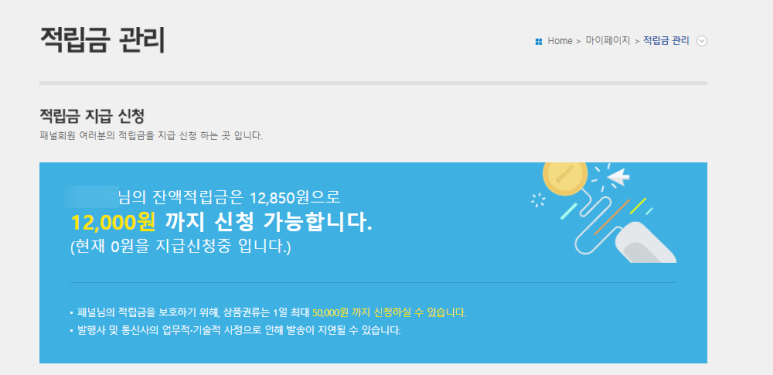 저번에도 적립금 신청된 금액이 이렇게 입금됐었습니다.