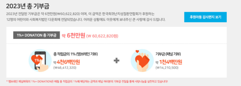 2023년 총 기부금은 약 6천만원이나 되네요.