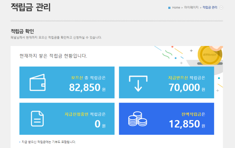 자료 : 엠브레인 패널파워(적립금 예시)