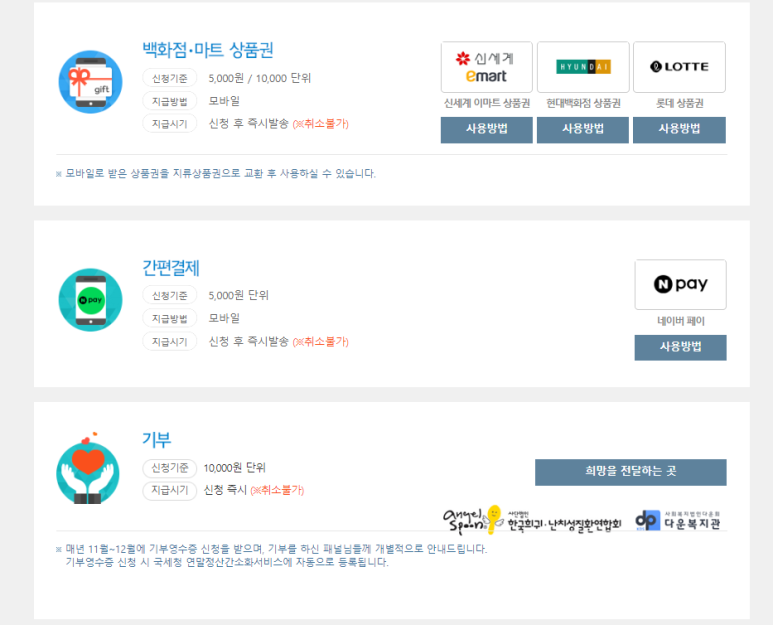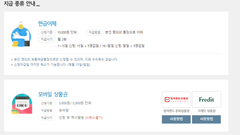 문화상품권 등 다양한 방법으로 찾아갈 수 있습니다.