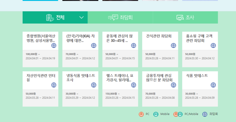 패널로서 다양한 설문조사에 참여할 수 있는데