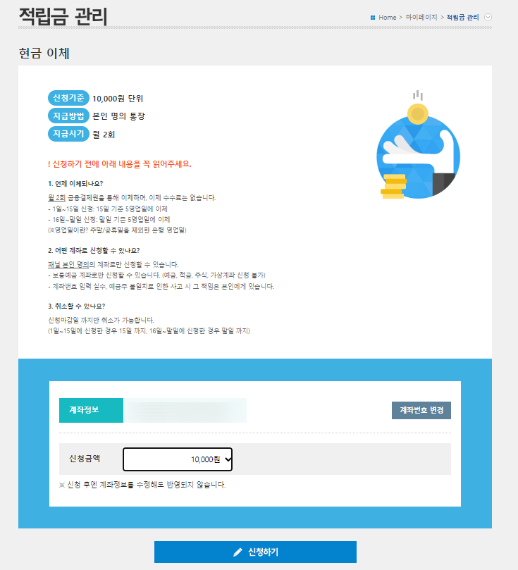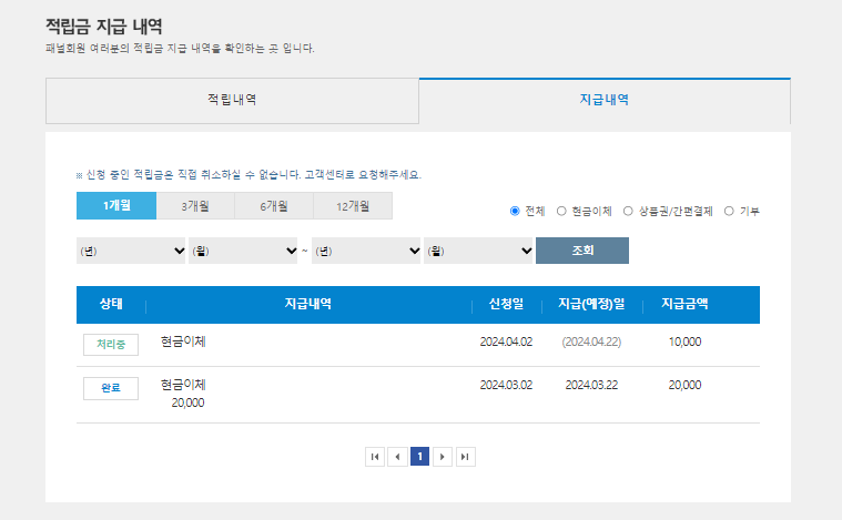 먼저 적립금 지급 신청을 합니다.