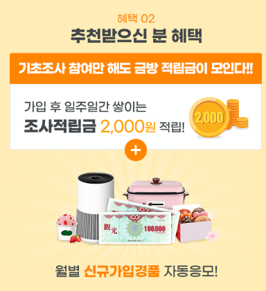 (추천자는 1천원 적립/ 추천받은 사람은 조사적립금 2천원+신규가입경품 자동응모)