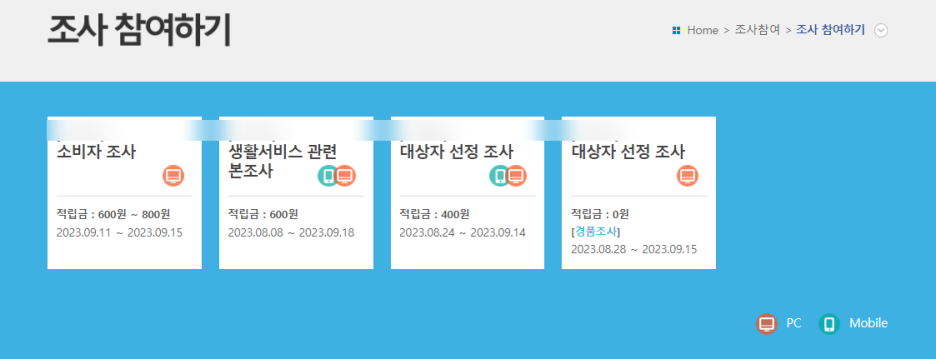 저는 보통 온라인조사/모바일조사에 참여하며